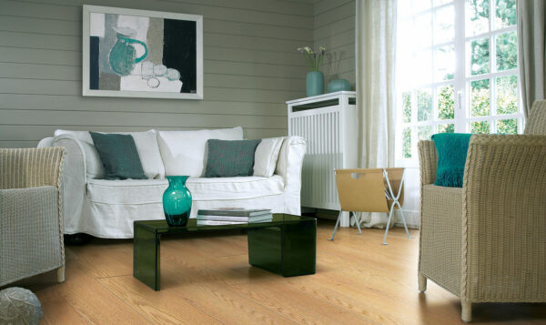 Het matglanzend laminaat uit de Magnitude collectie ziet er niet alleen uit als een echte eiken plankenvloer, het voelt ook zo aan. Dankzij de originele Chromezone®-technologie* krijgt de houtstructuur een natuurgetrouwe look & feel. Een fijne micro-v-groef op de vier zijden van de laminaatplanken brengt meer diepte in uw woning.